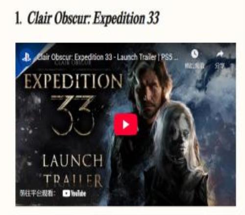 《33号远征队》获时代杂志年度游戏:今年已斩获多项大奖