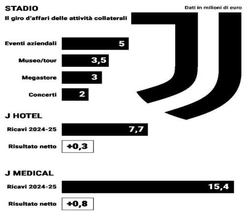 据《米兰体育报》报道,从比赛日收入到演唱会经济,再到酒店与医疗产业布局,尤文图斯围绕孔蒂纳萨园区构建起完整的场外商业体系。随着2026年安联球场首次迎来演唱会季,俱乐部的非足球业务收入版图进一步扩大,年综合规模已逼近4000万欧元。