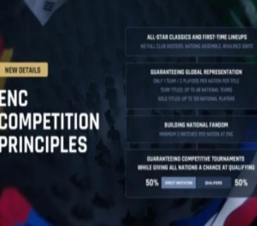 ENC将禁止参赛队伍以任何一支现有俱乐部的完整名单出赛,每支代表队必须由来自不同俱乐部的选手组成。