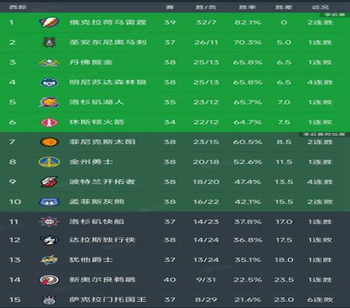 北京时间1月10日,今日的NBA常规赛一共有10场比赛,我们看看已经结束了的战况和西部最新排名,主要的信息如下:雷霆117-116逆转灰熊,快船121-105战胜篮网,鹈鹕128-107大胜奇才,掘金87-110惨败老鹰,太阳112-107尼克斯!