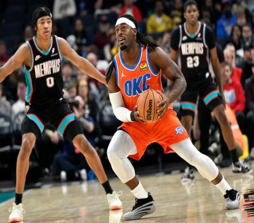 上半场灰熊最多时领先雷霆21分之多,雷霆是防守效率联盟第一的球队,可上半场还是让灰熊拿到65分这已经说明没有SGA的雷霆判若两队。杰威、米切尔、威金斯、多尔特、卡尔森的先发阵容进攻效率也不佳,尤其是球队第二巨头杰威没有什么进攻的欲望。