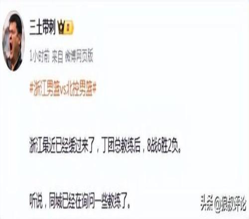 媒体人球圈赵探长发文点评:北控男篮最近四战三负,仅赢了四川2分,今天69分更是刷新赛季单场最低分。而浙江稠州在换帅后,已经8战6胜。