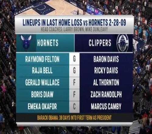 在比赛结束后,转播方晒出了两队交手纪录的数据:上一次黄蜂队在客场击败快船还要追溯到2009年2月28日,下方注脚则调侃道“彼时奥巴马刚刚上任美国总统38天”。自那之后,黄蜂队已经客场面对快船16连败。