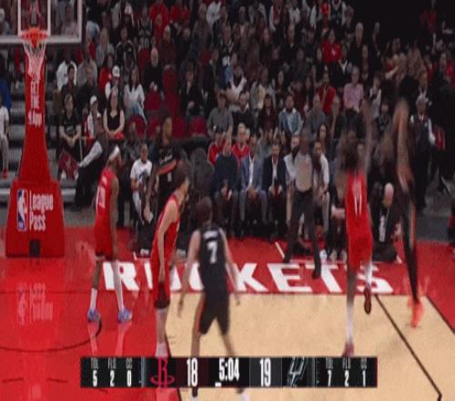 半场,马刺70-60火箭。