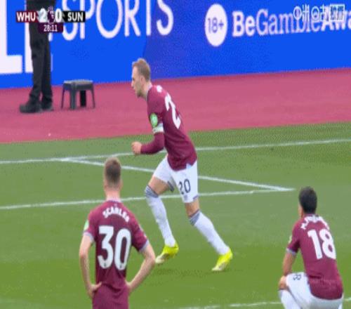 第28分钟,斯卡莱斯造点,鲍恩主罚点球命中,西汉姆联2-0桑德兰