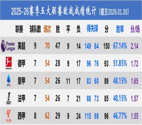 这也侧面证明了“五大联赛”果然不是白叫的,因为各大联赛的场均得分都出现了不同程度的下滑,说明比起其他中小联赛的对手,五大联赛球队还是不太好踢的。