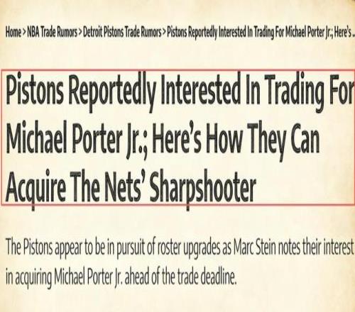 随着2月5日交易截止日越来越近,关于篮网前锋小波特的交易流言越来越多。继勇士、湖人之后,目前排名东部第一的活塞成为又一支被传有意他的球队。