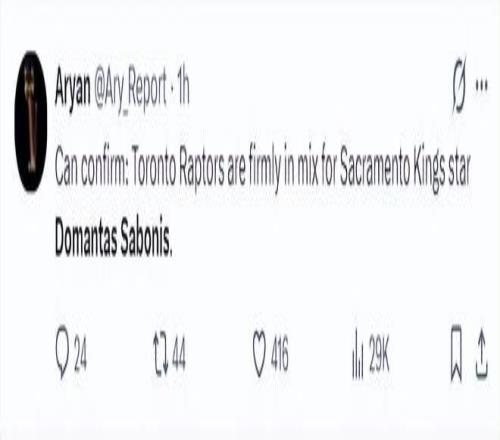 根据美记Aryan的说法,可以确认的是,多伦多猛龙队已经争取到了萨克门托国王球星小萨的加盟。(这位记者是后起之秀,而且爆料出过错误,所以还是要等Shams的确切消息,只能说双方的确有意,交易很有可能达成)