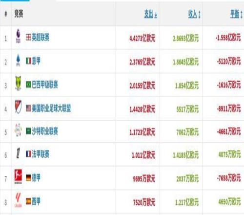 马竞只是西甲的异类。几年来,冬窗之于西甲近乎并不存在,去年整个联赛的引援投入只有2600万,今年马竞烧了5400万,才把投入规模推高到7520万,依然在五大联赛垫底。而卖人获得1.21亿营收,则导致西甲净投入为-4650万,是五大联赛除法甲外,唯一冬窗“赚钱”的联赛。